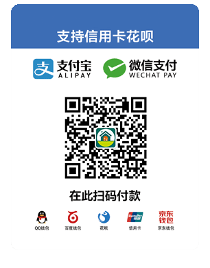 支持支付宝、微信、QQ钱包、京东钱包、百度钱包、花呗、信用卡等多种支付方式
